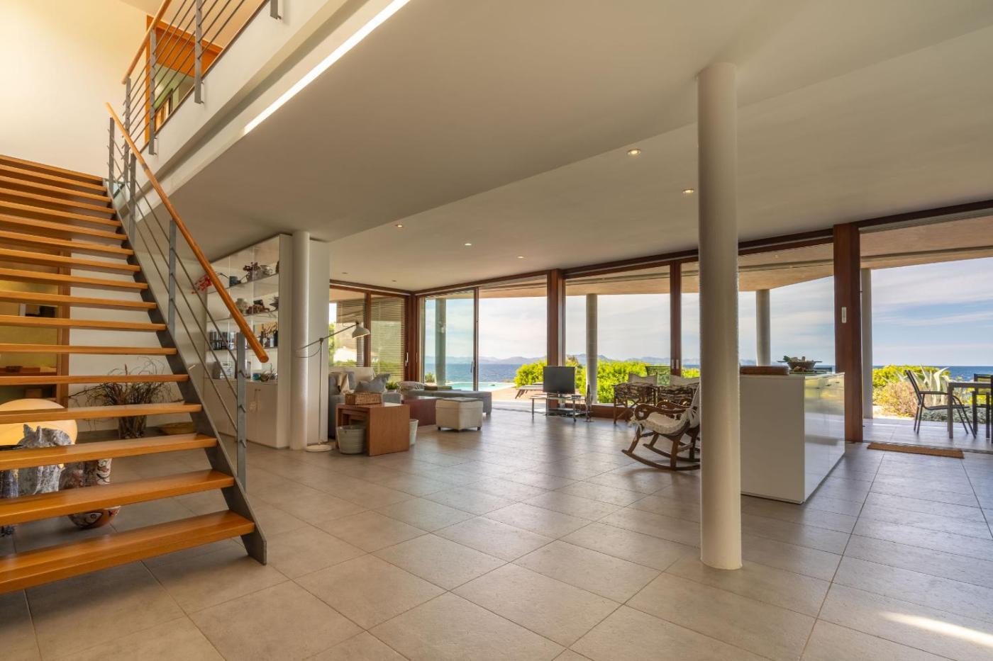 La villa cuenta con 4 dormitorios, 3 baños, ropa de cama, toallas, TV de pantalla plana con canales vía satélite, zona de comedor, cocina totalmente equipada y terraza con vistas al mar.