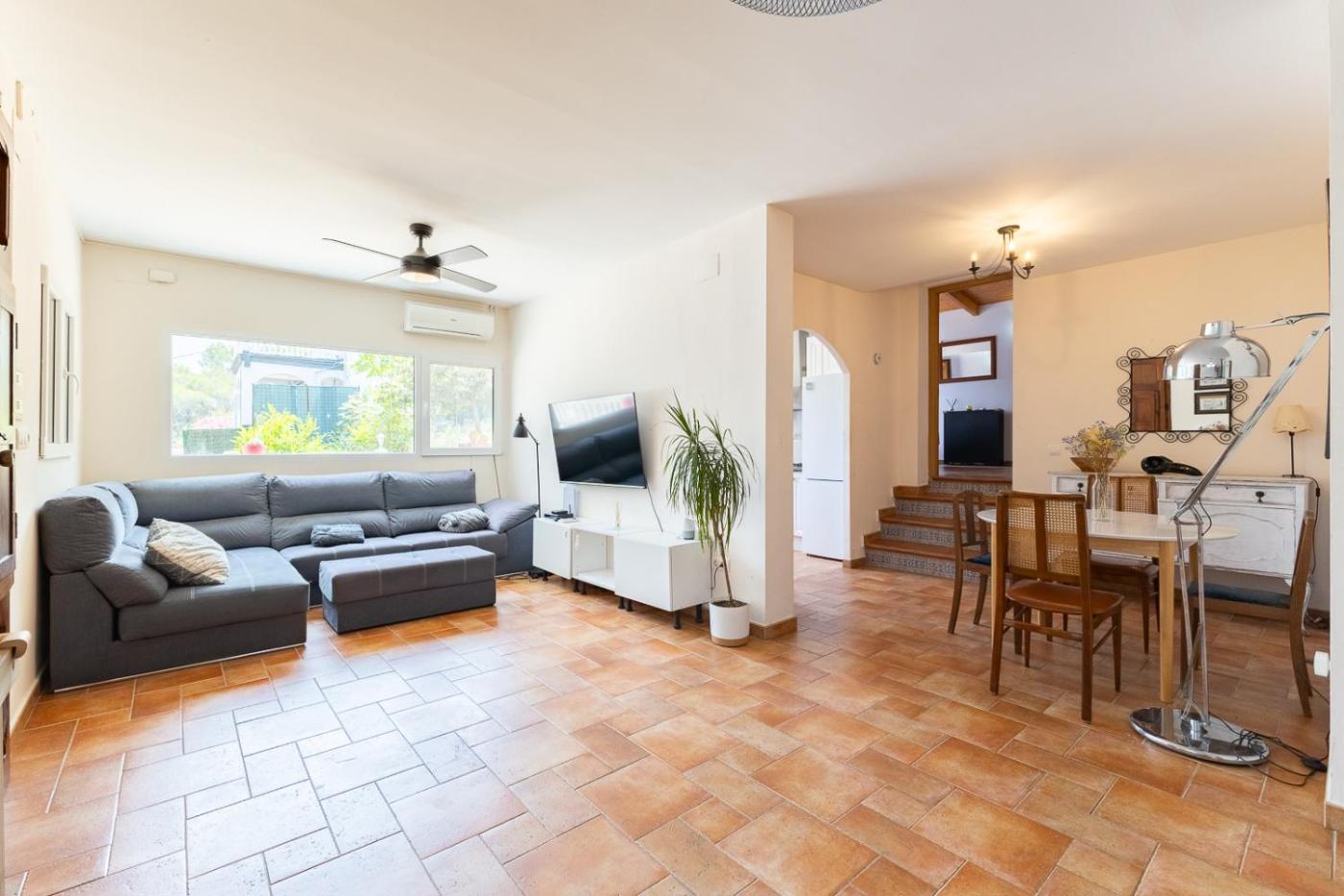 Esta casa o chalet con aire acondicionado consta de 2 dormitorios, una sala de estar, una cocina totalmente equipada con nevera y cafetera, y 2 baños con bidet y ducha. Hay TV de pantalla plana con canales por cable.