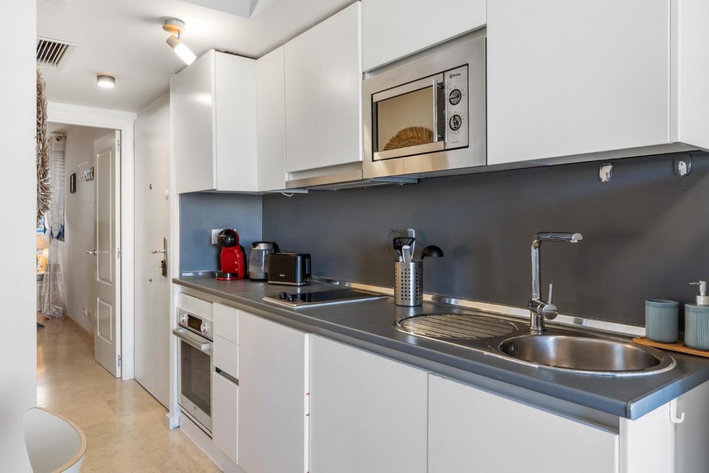 Apartamento Superior de 1 dormitorio con balcón. Boasting a private entrance, this air-conditioned apartment comes with 1 living room, 1 separate bedroom and 1 bathroom with a shower and a hairdryer. In the well-equipped kitchen, guests will find a dishwasher, kitchenware, an oven and a microwave. Featuring a terrace with sea views, this apartment also features a washing machine and a TV with cable channels. The unit has 2 beds.