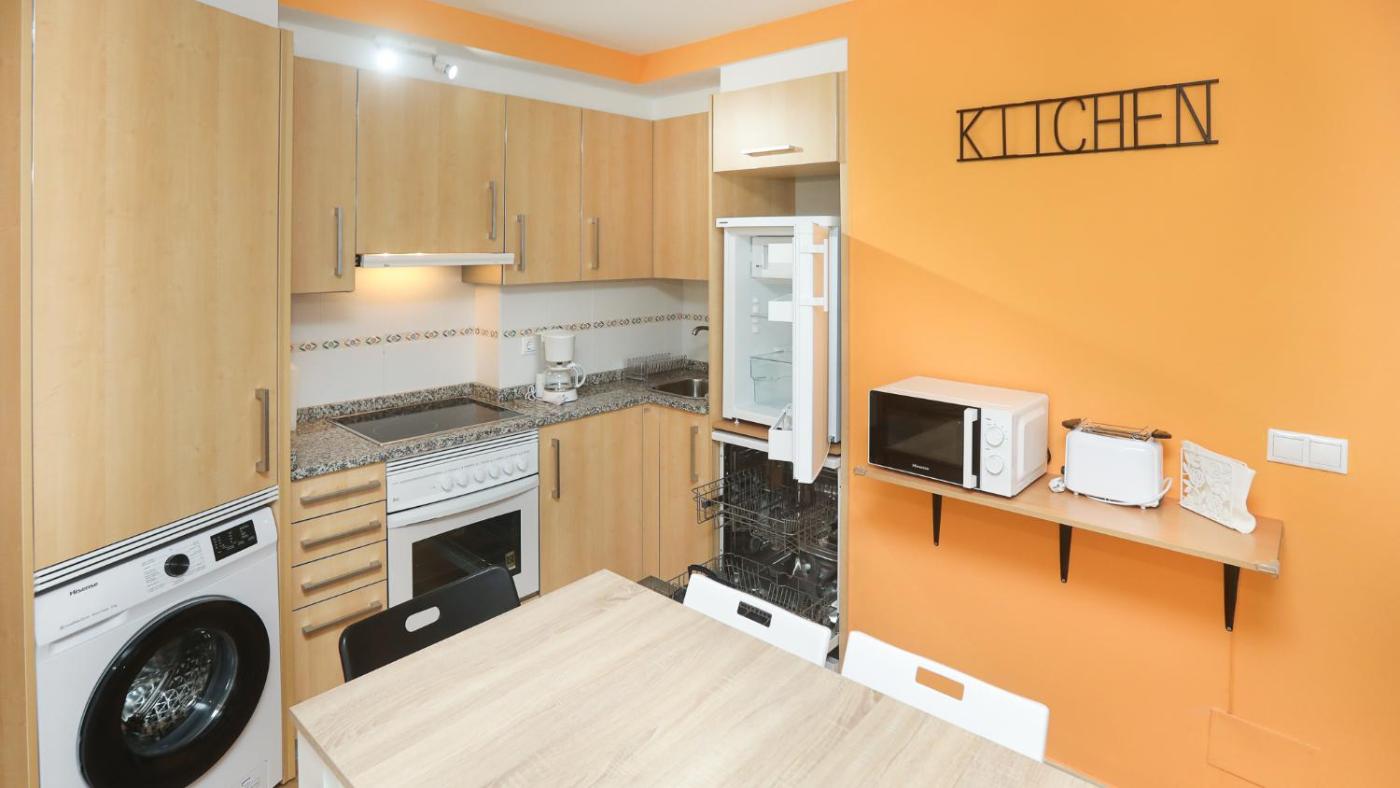 El apartamento tiene 2 dormitorios, 2 baños, ropa de cama, toallas, TV de pantalla plana, zona de comedor, cocina totalmente equipada y terraza con vistas al mar.