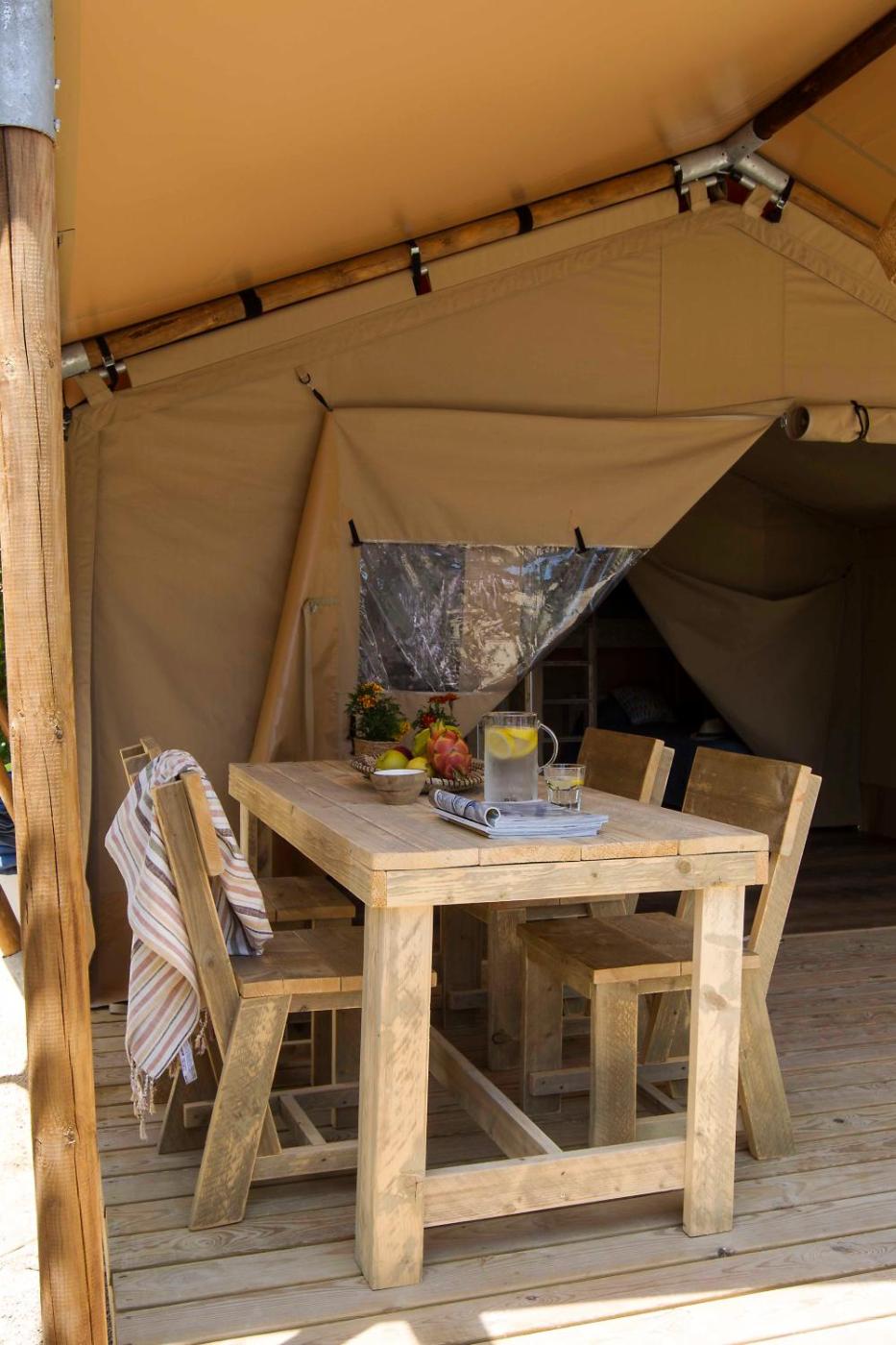 Tienda con terraza. Esta tienda cuenta con zona de estar, fogones y zona de comedor. En esta habitación NO se admiten mascotas. ;