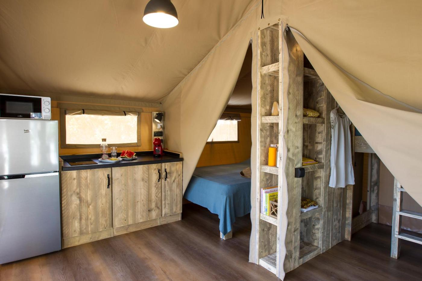 Tienda de 2 dormitorios. Esta tienda cuenta con zona de comedor, zona de cocina y fogones. En esta habitación se admiten mascotas. ;