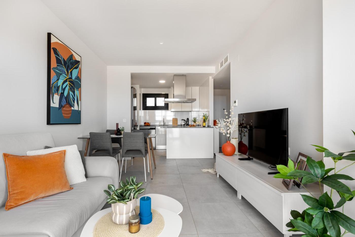 Este apartamento cuenta con 2 dormitorios, cocina con nevera y lavavajillas, TV de pantalla plana, zona de estar y 2 baños con ducha. Hay toallas y ropa de cama en el apartamento.