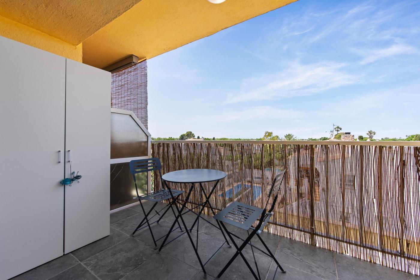 Estudio con terraza. Meals can be prepared in the kitchen, which has a stovetop, a refrigerator, a dishwasher and kitchenware. This air-conditioned studio is comprised of a flat-screen TV with streaming services, a private bathroom as well as a terrace with pool views. The unit has 2 beds.