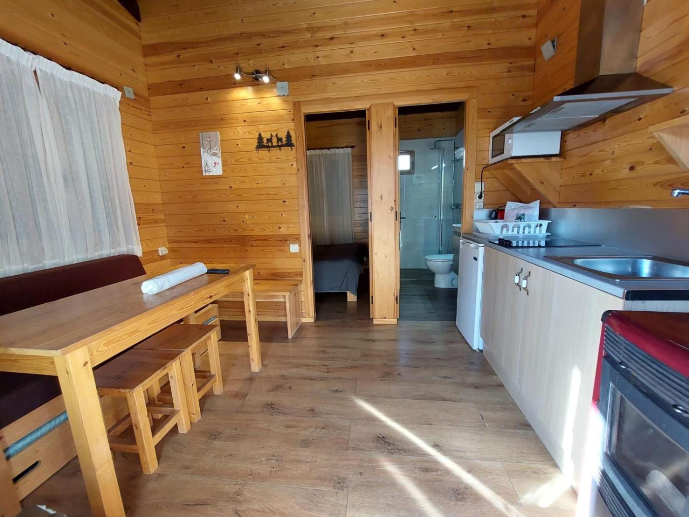Bungalow (2 adultos). Este bungalow dispone de porche amueblado y sala de estar con sofá cama y TV. La zona de cocina está equipada con nevera y microondas. La calefacción ecoeficiente está disponible por un suplemento durante la temporada de invierno. ;