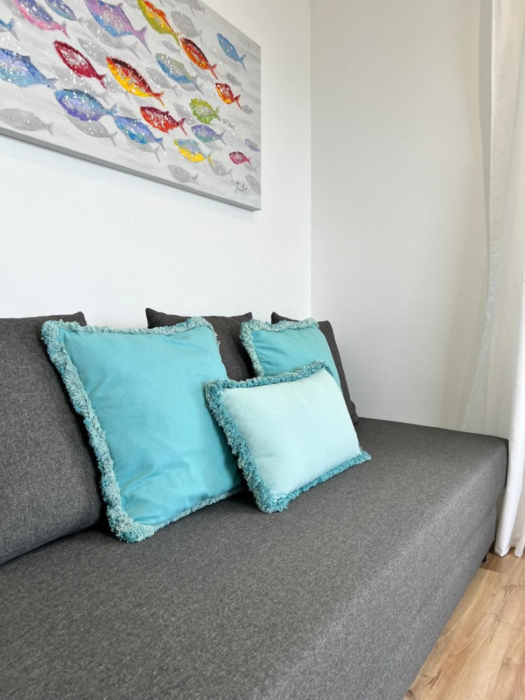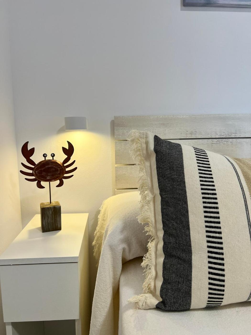 El apartamento cuenta con 2 dormitorios, 1 baño, ropa de cama, toallas, TV de pantalla plana, zona de comedor, cocina totalmente equipada y terraza con vistas al mar.