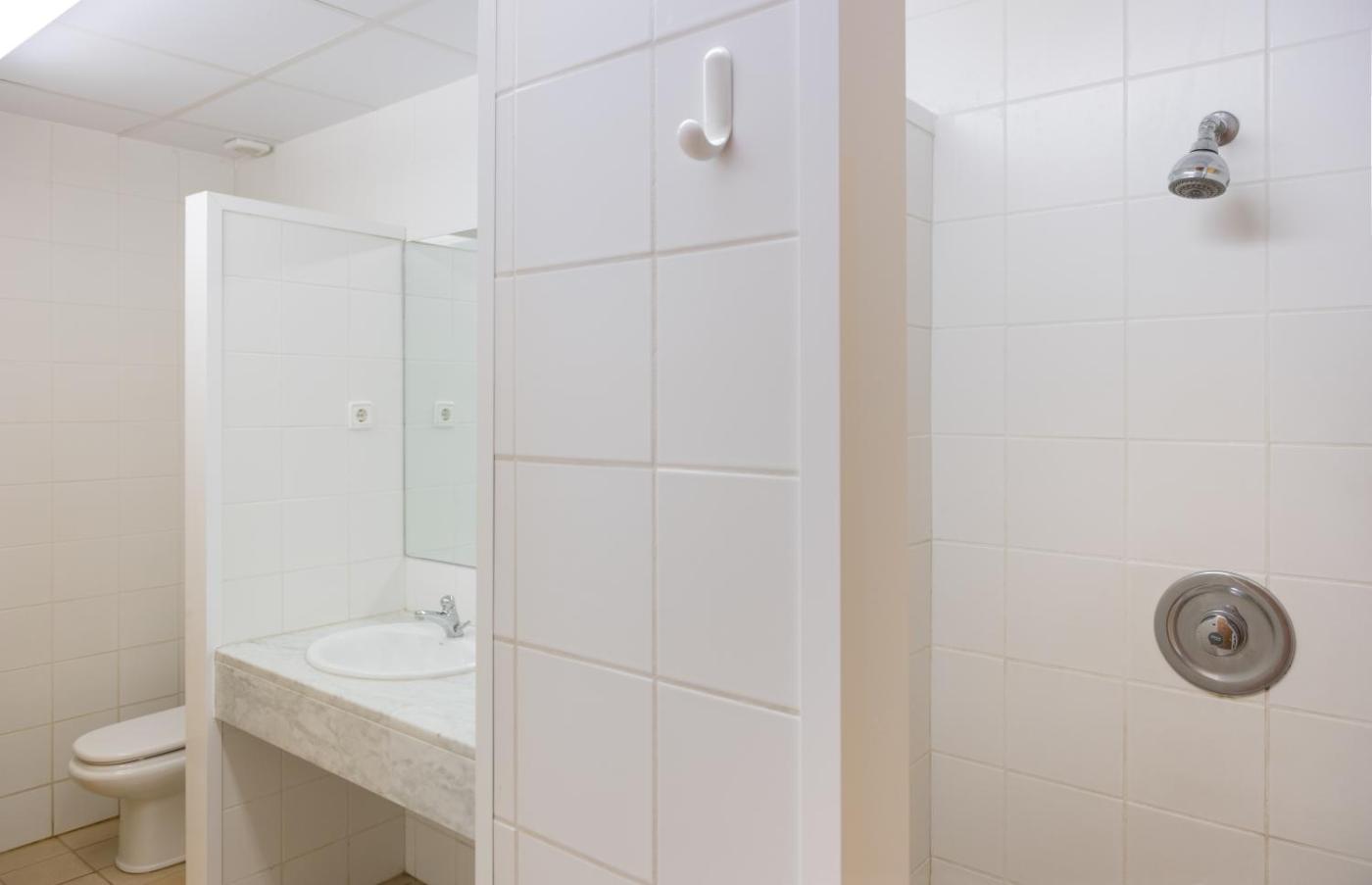 Habitación Familiar con baño privado. The family room includes a private bathroom fitted with a shower. The unit has 5 beds.