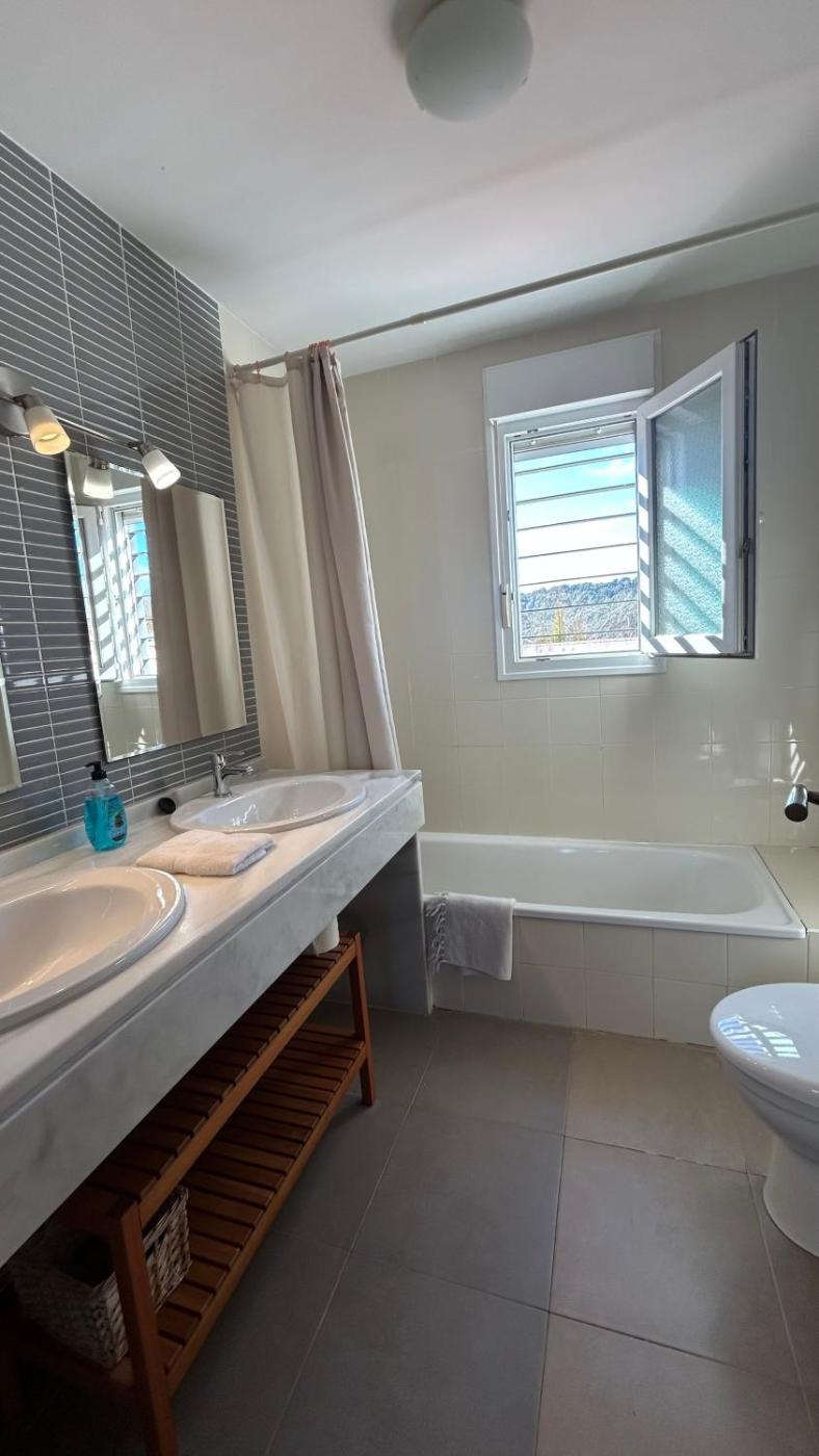 Casa de 3 dormitorios. Each house features 3 colourful bedrooms and a living-dining room with a TV and fireplace. The kitchen includes a dishwasher and oven. Towels and bed linen are provided, and the bathroom comes with a bathtub. The large bedroom in one house has bunk beds, and the one in the other house has 4 singles.There is a lovely garden with a furnished terrace and BBQ facilities. Please note the main bedroom does not have a TV.
