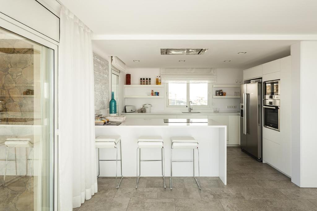 Casa de 4 dormitorios. Spread over 2 floors, the villa has 4 bedrooms, 2 double and 2 twins, 4 bathrooms and 1 guest toilet. The fully-equipped kitchen opens onto a bright dining area with large windows with views over the surroundings.