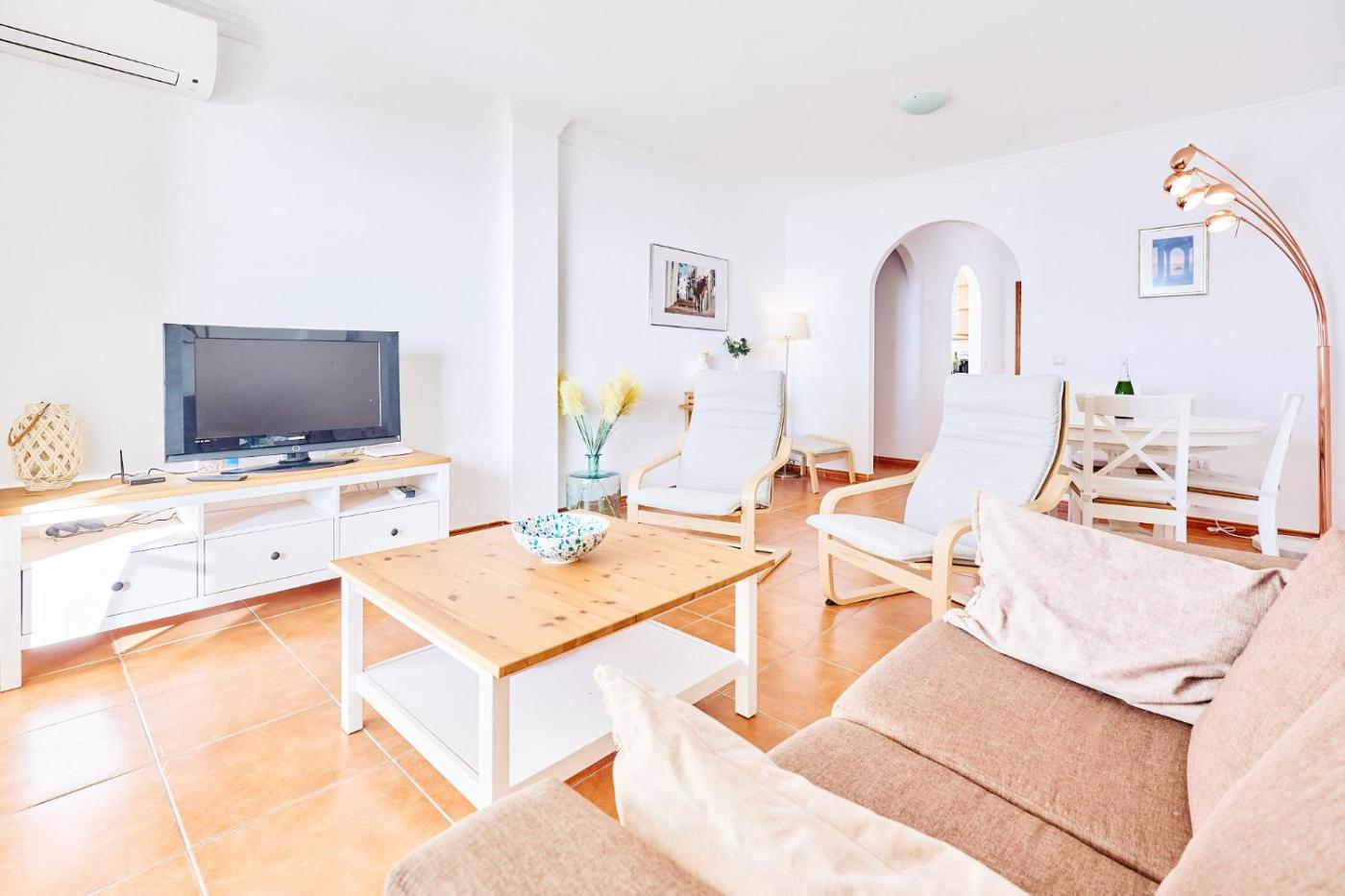 Apartamento Deluxe de 2 dormitorios con vistas al mar. The spacious apartment has 2 bedrooms and 2 bathrooms with a shower and free toiletries. Guests can make meals in the kitchen that features a dishwasher, kitchenware, an oven and a microwave. The air-conditioned apartment features a TV with streaming services, a washing machine, a coffee machine, tumble dryer as well as sea views. The unit has 3 beds.