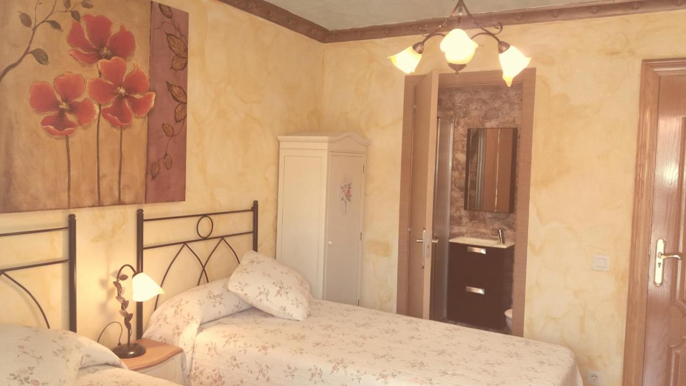 Habitación Doble - 1 o 2 camas. Esta habitación es luminosa, presenta una decoración rústica y dispone de calefacción y suelo de madera. Cuenta con baño privado y se facilitan toallas y ropa de cama. Hay varios enchufes en el alojamiento. ;
